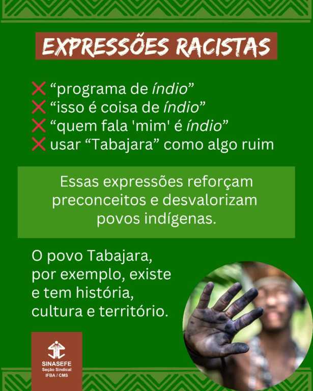 Reafirmando o compromisso da nossa Seção Sindical no combate à todas as formas de opressão que, no último Congresso Regimental do SINASEFE-IFBA/CMS, realizado em julho de 2023, foi aprovada a criação da pasta de Etnia, destinada para as pautas de negres, indígenas e quilombolas.