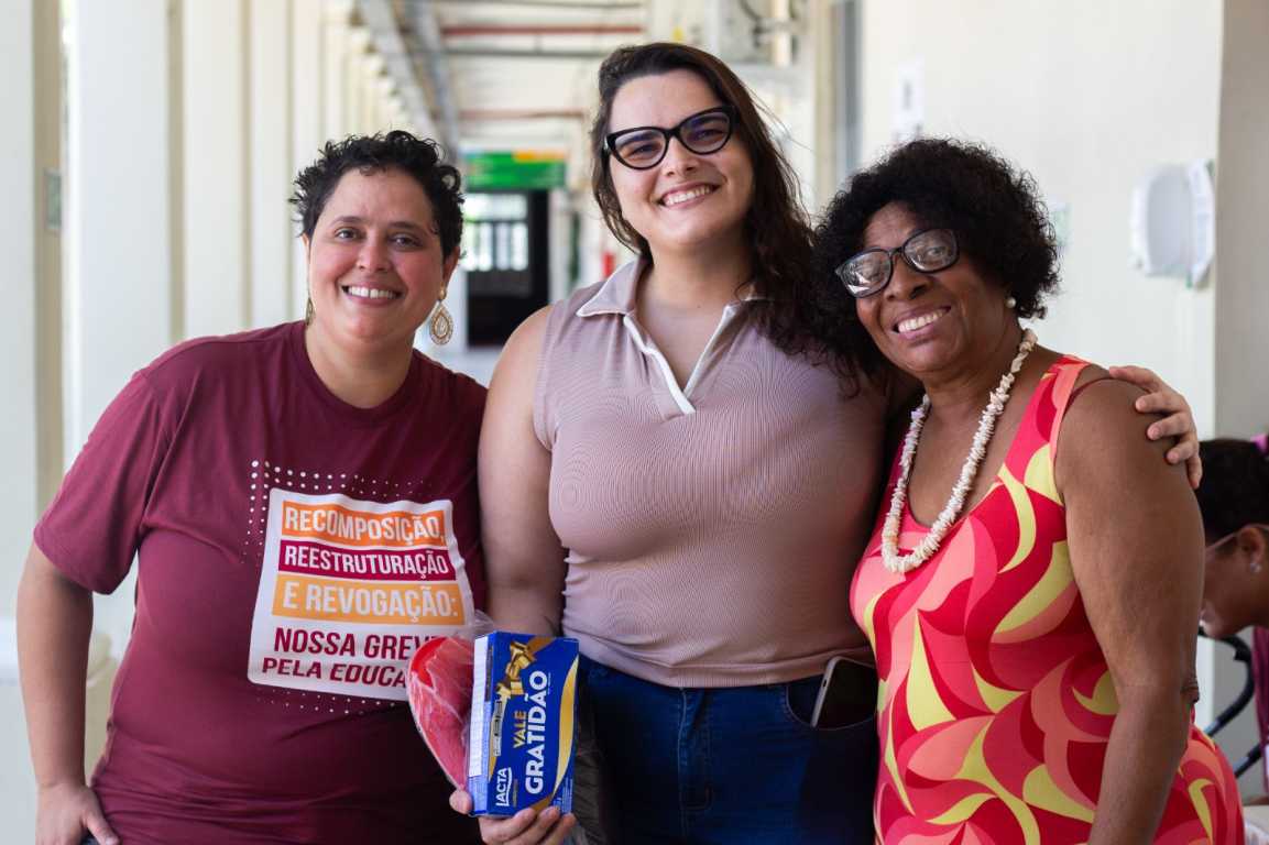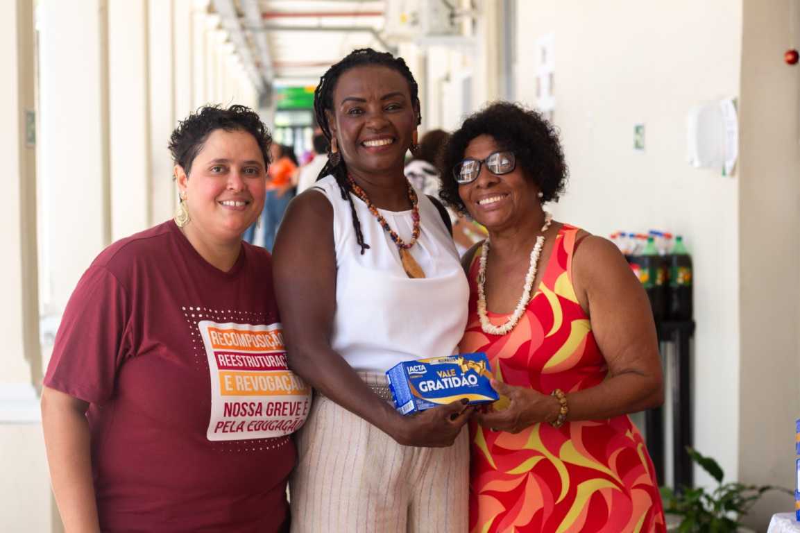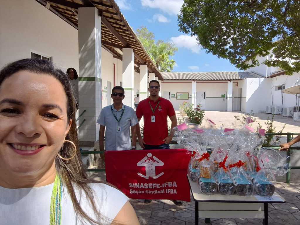 Na Reitoria do IFBA, a Gestão Angela Santana esteve representada por Teresa Bahia (coordenadora-geral), Gisele Paixão (comunicação) e Laís Andrade (política para mulheres e comunidade LGBTQIAPN+), servidoras lotadas na unidade, além de Rosa Mota (secretaria). Na ocasião, foram entregues caixas de chocolates às/aos sindicalizadas(os), e duas novas filiações foram registradas durante a atividade.