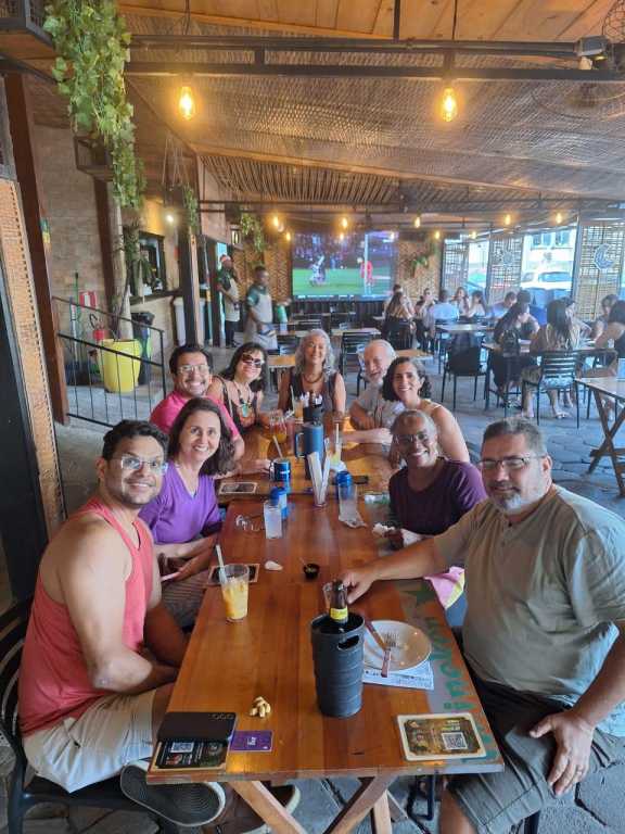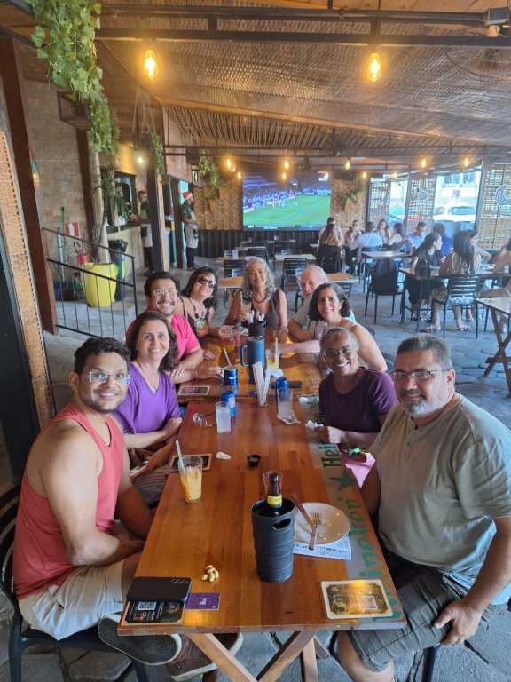 Em Salvador, ocorreram duas confraternizações: uma com as(os) servidoras(es) do Campus Salvador, realizada no bairro da Ribeira, que contou com a presença de integrantes da Diretoria do SINASEFE-IFBA/CMS, representada por Teresa Bahia (coordenadora-geral) e Laís Andrade (política para mulheres e comunidade LGBTQIAPN+); e outra com as(os) filiadas(os) lotadas(os) no Colégio Militar de Salvador, que se reuniram no bairro do Stiep, com a presença de Maria Eliana Matos (coordenadora de finanças) e André Sarmento (assuntos jurídicos).