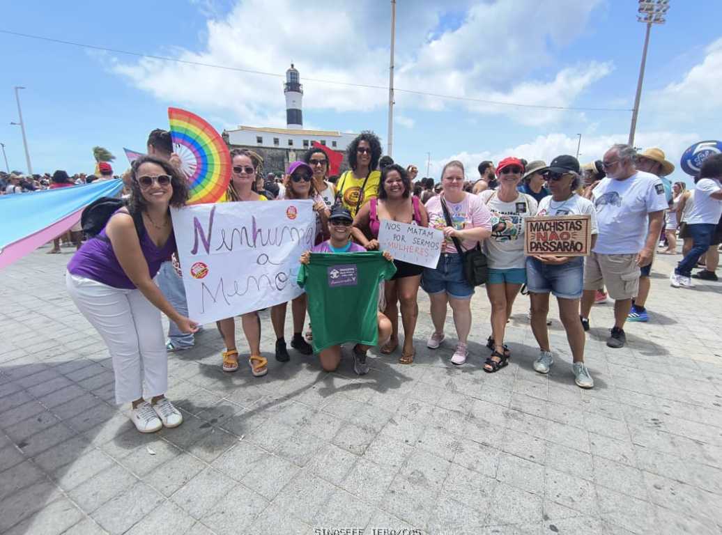 Em Salvador, o sindicato foi representado pela coordenadora de Comunicação, Gisele Paixão, e pelas filiadas TAEs da Reitoria Jacineide Arão, Adriana Costa e Núbia Almeida, nas manifestações em defesa da vida das mulheres, contra a misoginia e o feminicídio. O ato contou com uma importante caminhada do Cristo ao Farol da Barra.