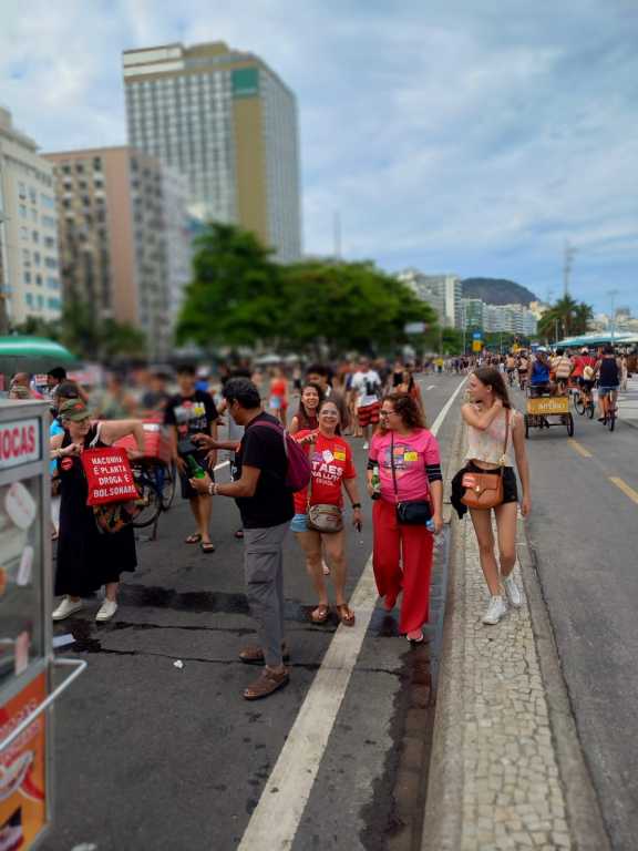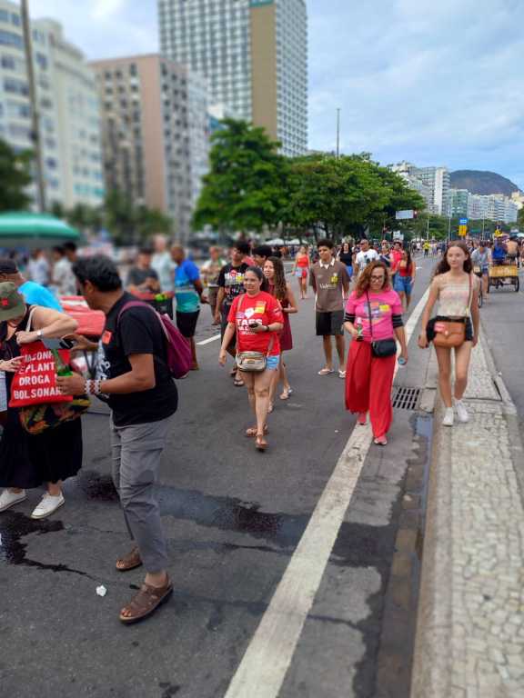 Já no Rio de Janeiro, a manifestação ocorreu em Copacabana e teve como pauta o PL da Dosimetria. A Gestão Angela Santana esteve representada por Elane Nardotto (Políticas Educacionais, Atividades Culturais e Práticas Integrativas), Maria Eliana Matos (Financeiro), Rosa Mota (Secretaria), Cátia Almeida (Assuntos de Pessoal TAE), Eriswagner Soares (Combate às Opressões), André Sarmento (Assuntos Jurídicos), Paulo Roberto dos Santos (Assuntos de Pessoal Docente) e Luís Fernando Brito (Etnia).
